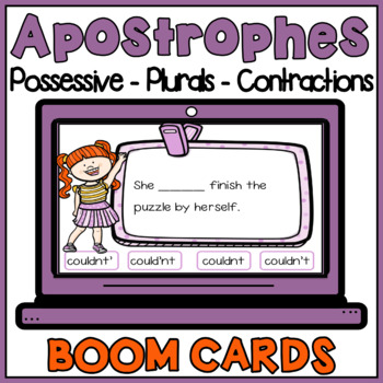 Do your kids get confused about when to use an apostrophe when writing? This Apostrophes Boom Cards activity will help them understand the difference between plurals and possessive nouns and contractions.