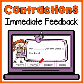 Use this Apostrophes Boom Cards activity to improve students’ understanding on when to use apostrophes as well as where the apostrophe goes. Students will read simple sentences and determine if an apostrophe is needed or not, then select the correct word to complete the sentence. Students will learn to determine if a word is a contraction or a possessive noun or a plural .