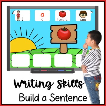 Use this build a sentence Boom Cards writing activity to teach your students how to build a complete sentence. This writing activity contains basic sight words and names of fruits and vegetables with visual supports and is perfect for special education classrooms.