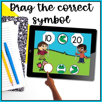 Use these Comparing Numbers Boom Cards to get your students excited to compare 2-digit numbers using greater than, less than and equal to symbols. Using the animated greedy alligators they will have fun comparing numbers up to 30.