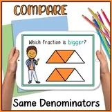 Help your students understand how to compare fractions with the same denominator with these Comparing Fraction Boom Cards. These fractions activity comes with fraction visual models to help your students compare the fractions.