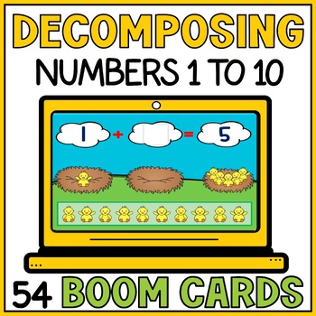 Teaching decomposing numbers to 10 should be fun and engaging for students! With this Decomposing Numbers to 10 Boom Cards digital resource, you can make your lesson interactive and enjoyable. Strengthen your students understanding of how to decompose whole numbers and number sense.