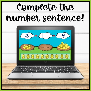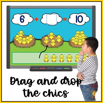 Students will use the adorable chicks as counters and visual support to learn how to complete the addition number sentence. They will get an understanding of how two smaller numbers can make the larger number.