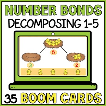 Introduce students on how to decompose numbers with this fun and interactive no-prep activity. With this Decomposing Numbers to 5 Boom Cards digital resource, you can make your lesson interactive and enjoyable. Strengthen your students understanding of how to decompose whole numbers and number sense.