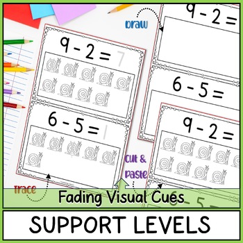 Just print and you will have a set of differentiated simple subtraction with pictures worksheets for your kindergarten or special education classroom. Your students will learn to subtract within 20 using pictorial models. Introduce or reinforce this foundational math skill that meets all your students’ learning levels.