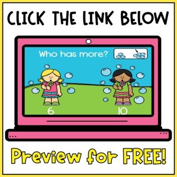Teach the concepts of more or less to your students using these interactive Boom Cards. They can practice comparing numbers or comparing quantities up to 10. Your students will compare two sets and identify which is more or less in sets up to 10. Numbers have also been included for students to build their comparing numbers skills.