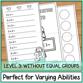 Try this DIFFERENTIATED Multiplication using Equal Groups activity to build your students’ multiplication fact fluency. Provide the scaffolds and visuals they need to practice their multiplication fact family 3. This engaging and interactive multiplication activity comes with 3 levels of differentiation.