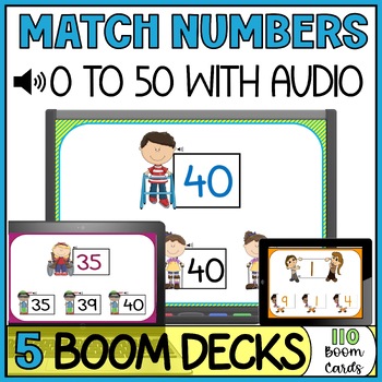 This number sense bundle of Matching Numbers Boom Cards with Audio will get your students to number match 0 to 50. Build their number recognition and number identification skills. Perfect to help students master their IEP goals or solidify their number sense.