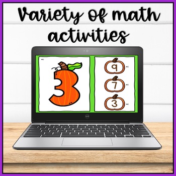 Are you looking for some Fall Halloween Math Boom Cards for numbers and shapes activities? This numbers and shapes Boom Cards bundle contains activities for matching colors – matching numbers – matching shapes – comparing sizes – addition and counting objects in sets.