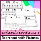 There are over 500 Differentiated Picture Addition and Subtraction within 20 Worksheets here! These simple adding and subtracting with pictures worksheets is easy to use in your kindergarten or special education classroom. The visual supports help deepen your students’ understanding of basic addition and subtraction.