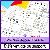 These addition and subtraction math worksheets have been differentiated to allow student with varying abilities to solve the same problems as their peers with the additional supports/ cues they need. Students can build on their addition and subtraction skills by completing worksheets with the most to the least supports/ cues.