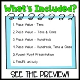 This Place Value Task Cards bundle is packed with place value activities for your students. Use the Place Value Task CardsPower Point Presentation to introduce place value and the hundreds base ten blocks to your students through whole group instruction. Use the EASEL activity to reinforce the concepts at your math centers or small group instruction.
