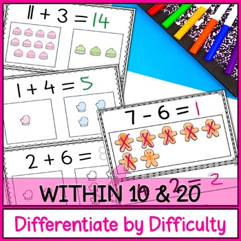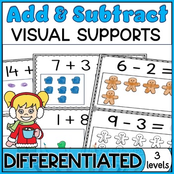 These winter themed Addition and Subtraction with Pictures within 10 & 20 Worksheets have been differentiated for you! The simple 1-digit & 2-digit number addition and subtraction problems include visual supports to deepen their understanding of basic skills of adding and subtracting.