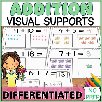 These spring themed Differentiated Picture Addition Worksheets within 10 and 20 make it easy to teach addition with visual supports, counting pictures, and leveled practice. Your students will build number recognition, one-to-one correspondence, and basic addition facts while staying engaged.