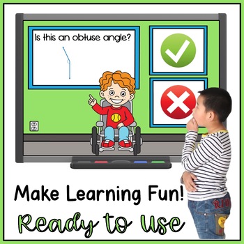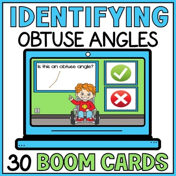 Focus on teaching one type of angle at a time with this Identifying Obtuse Angles Boom Cards activity in your special education classroom. Solidify their understanding of obtuse angles in different orientations and colors. They will identify obtuse angles using yes or no options.