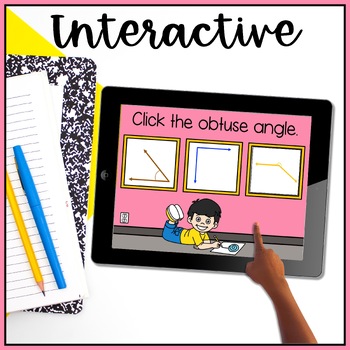 Use this Types of Angles Boom Cards activity teach and reinforce the concept identifying angles. With this no-prep, interactive digital activity, students will learn to identify right angles, acute angles, and obtuse angles shown in different orientations.