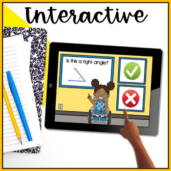 With this Identifying Right Angles Boom Cards activity, you can focus on teaching one type of angle at a time in your special education classroom. Using the yes or no options, your students will solidify their understanding of right angles at different orientations and colors.