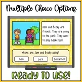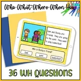 Do they get the WH questions mixed up when answering comprehension questions?Teaching your students to answer WH questions can be easy. Each prompt has a short story with 3 simple sentences describing a picture. Students will read/listen to the passage, then answer the WH questions from a field of 3 answer options.