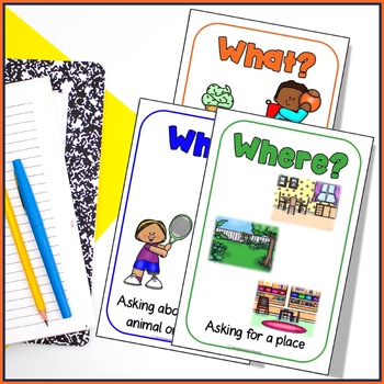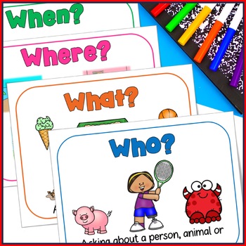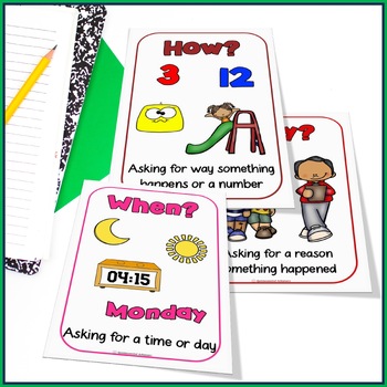 These WH questions visuals can also be used as anchor charts for your small group instructions or placed on your bulletin board as a reference for your students. They go great with any WH questions lessons, activities and assessments.