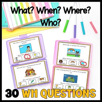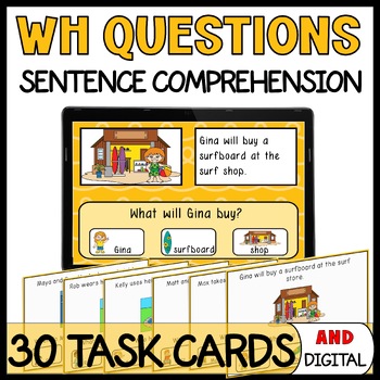 WH Questions Sentence Comprehension Task Cards with Visuals