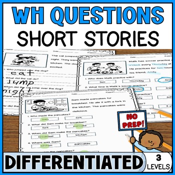 Struggling to teach WH questions without constantly modifying materials? These differentiated WH questions worksheets include 6 short stories with simple sentences, visual supports, and 3 levels of differentiation—ready to use for special education, intervention, and K–2 learners.